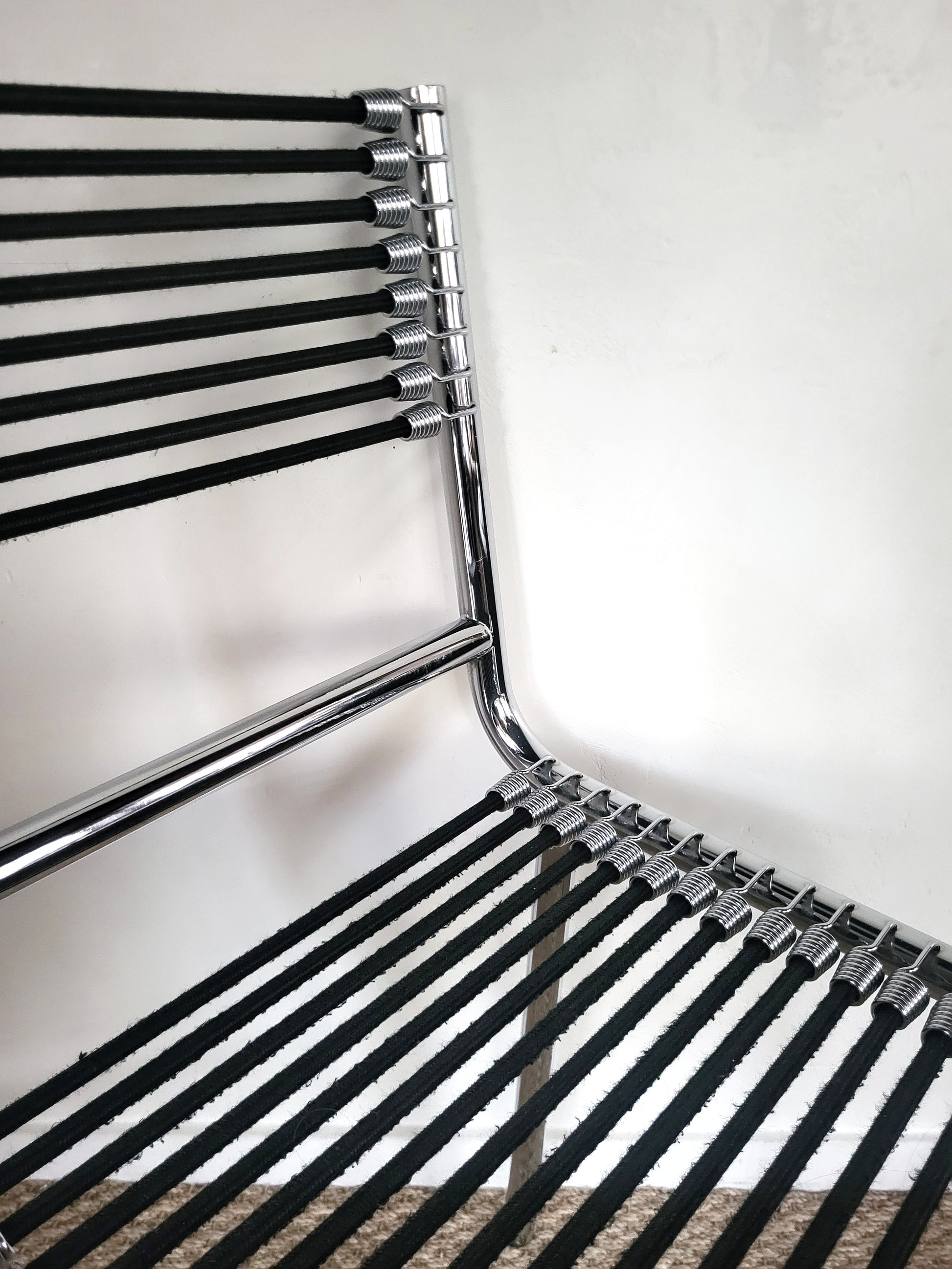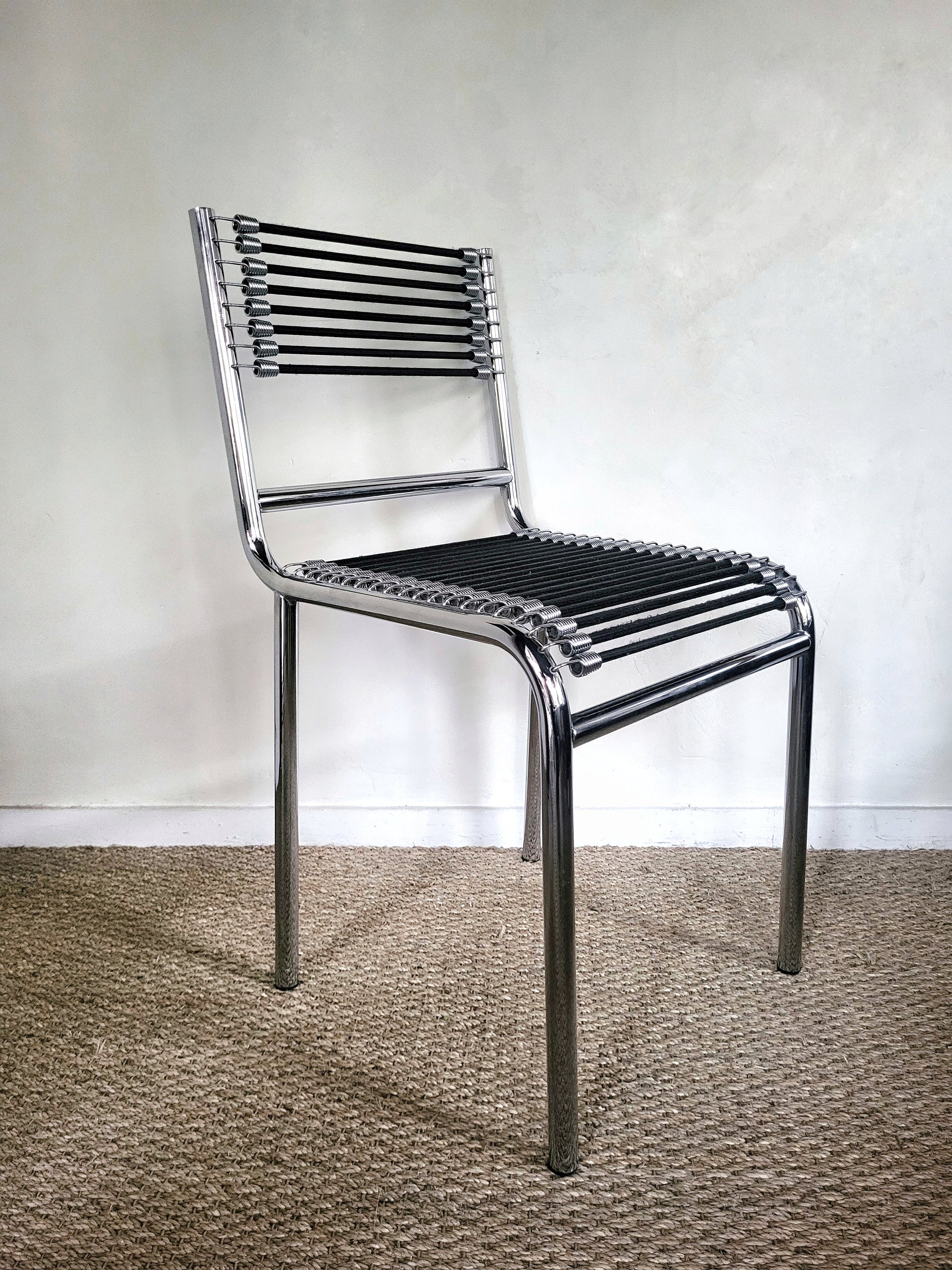 Chaises Sandow par René Herbst en acier tubulaire chromé et tendeurs. 4 disponibles vendues séparément.