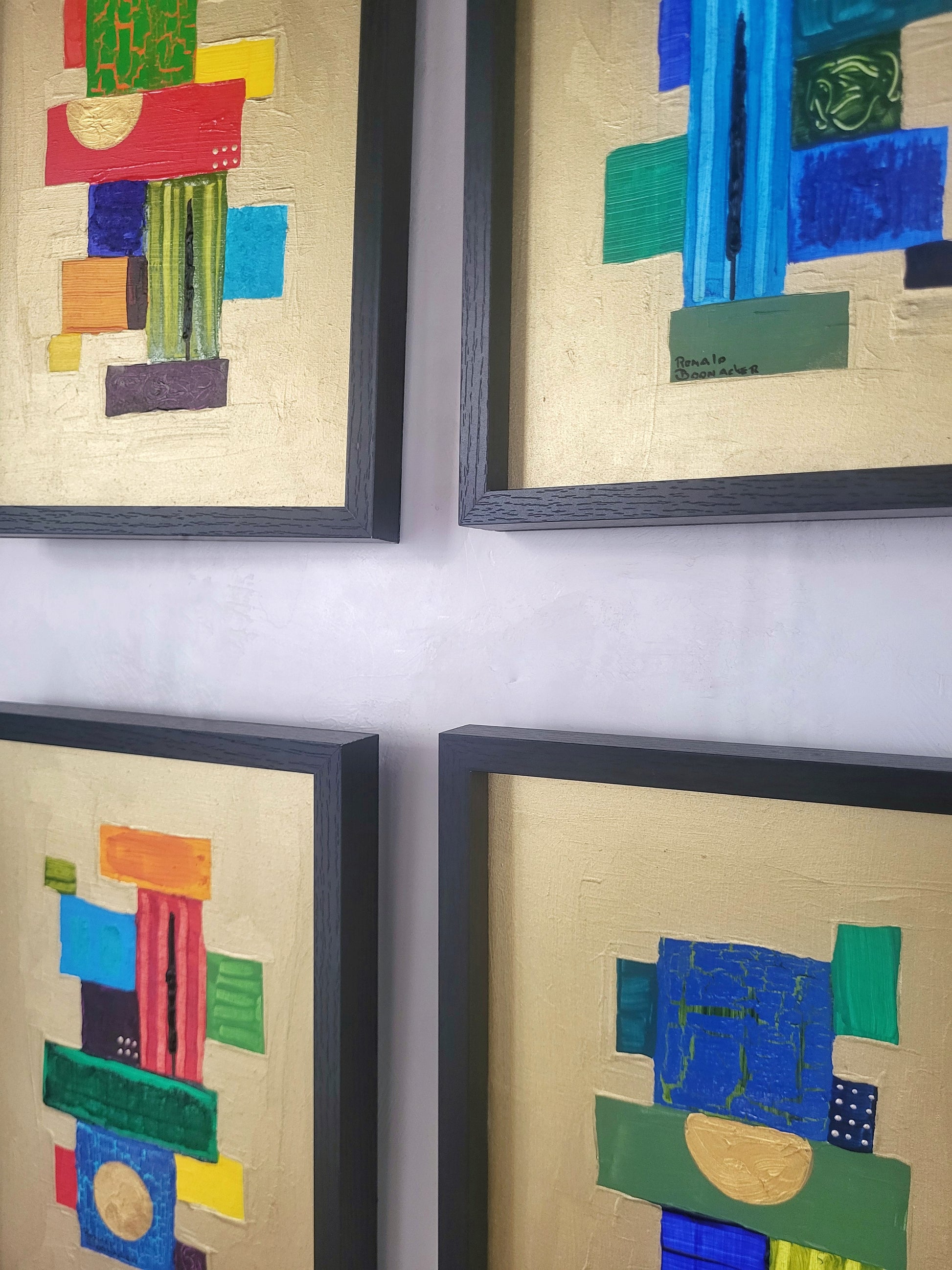 Duo de toiles par Ronald Boonacker (Pays-Bas). "Paysages Italiens" 2024. Acrylique et aplats dorés sur bois. Signés et encadrés. Certificat d'authenticité inclus.