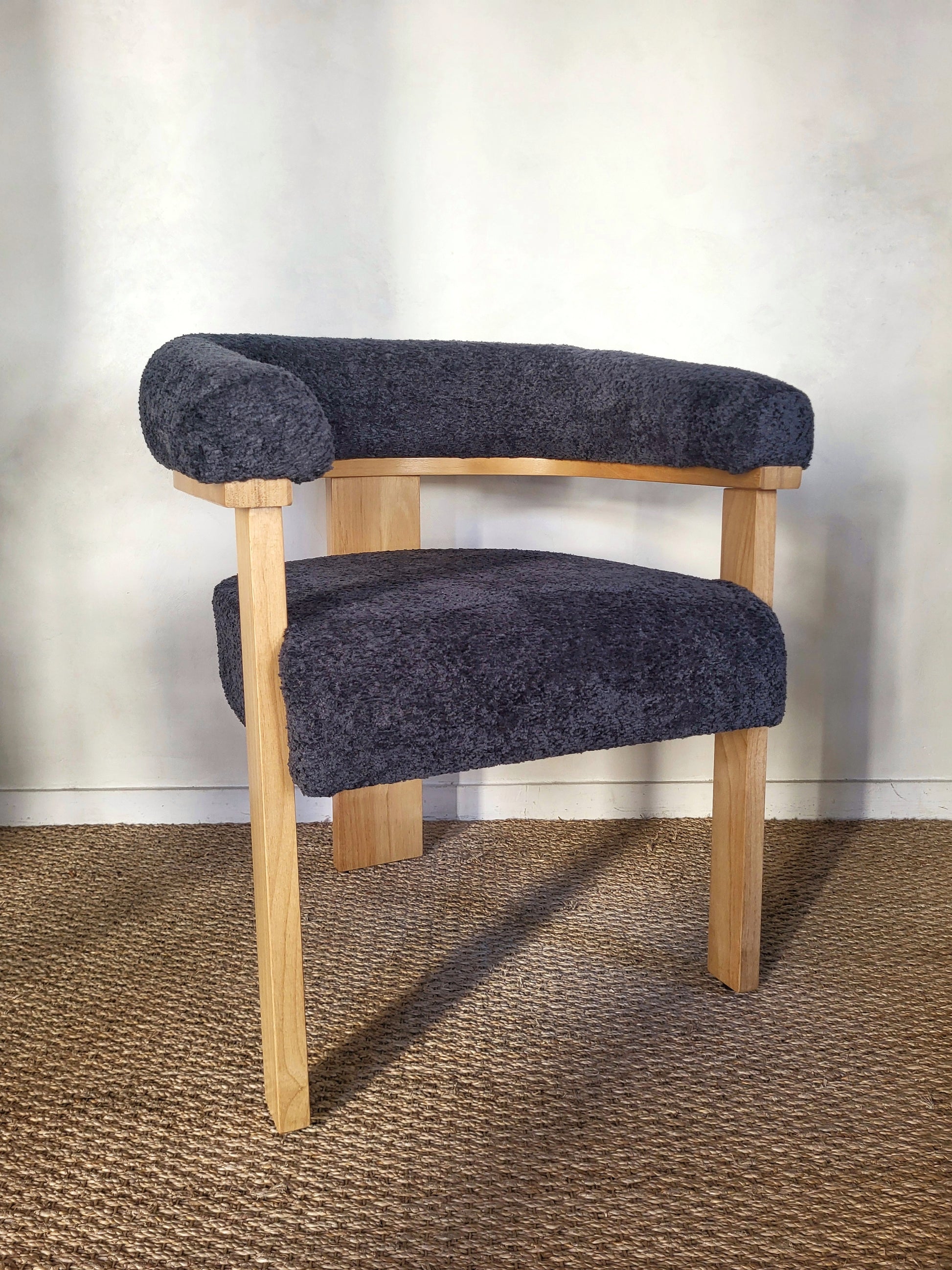 Fauteuil de table ou d'appoint en bois massif et tissu bouclé.