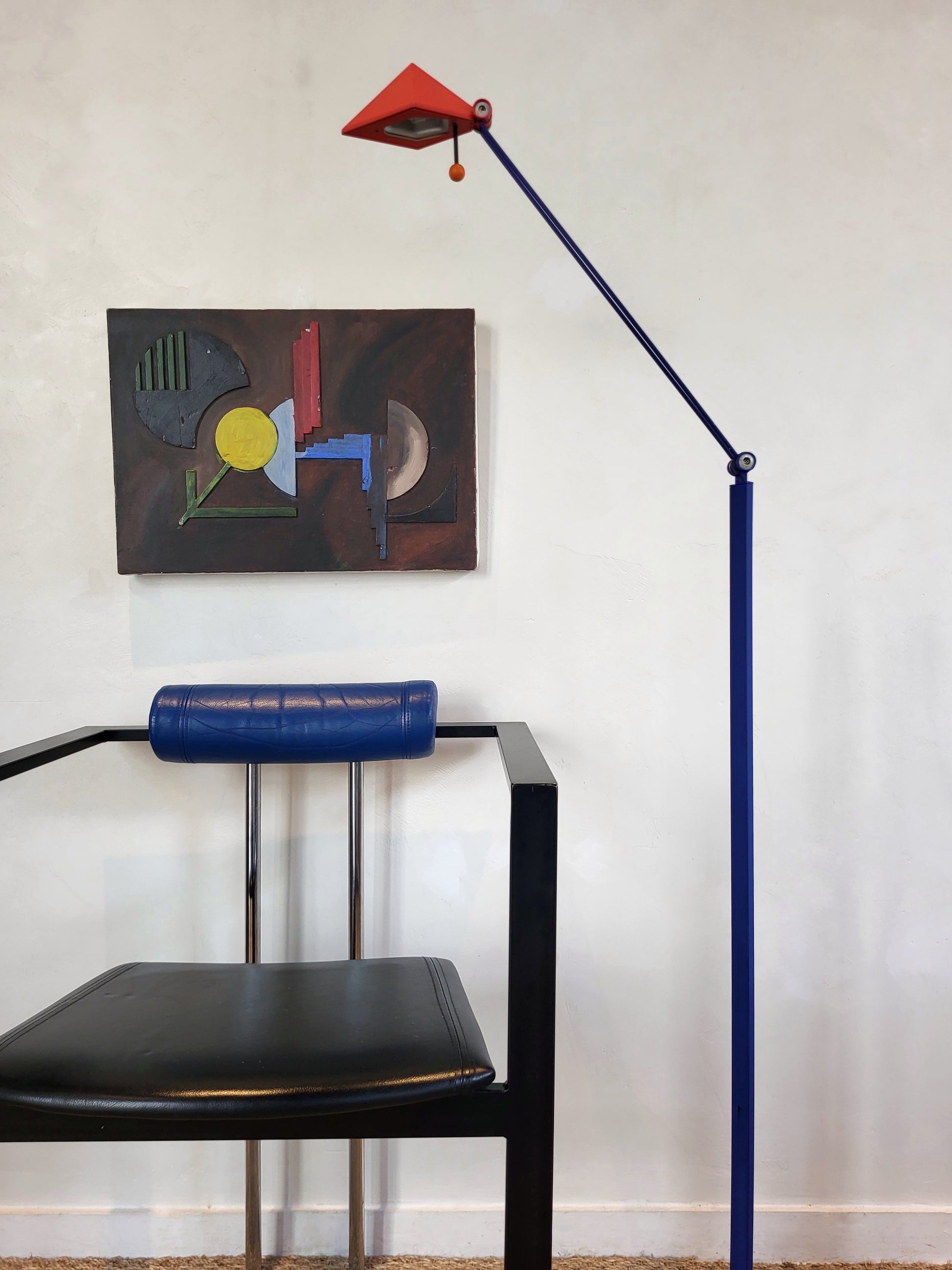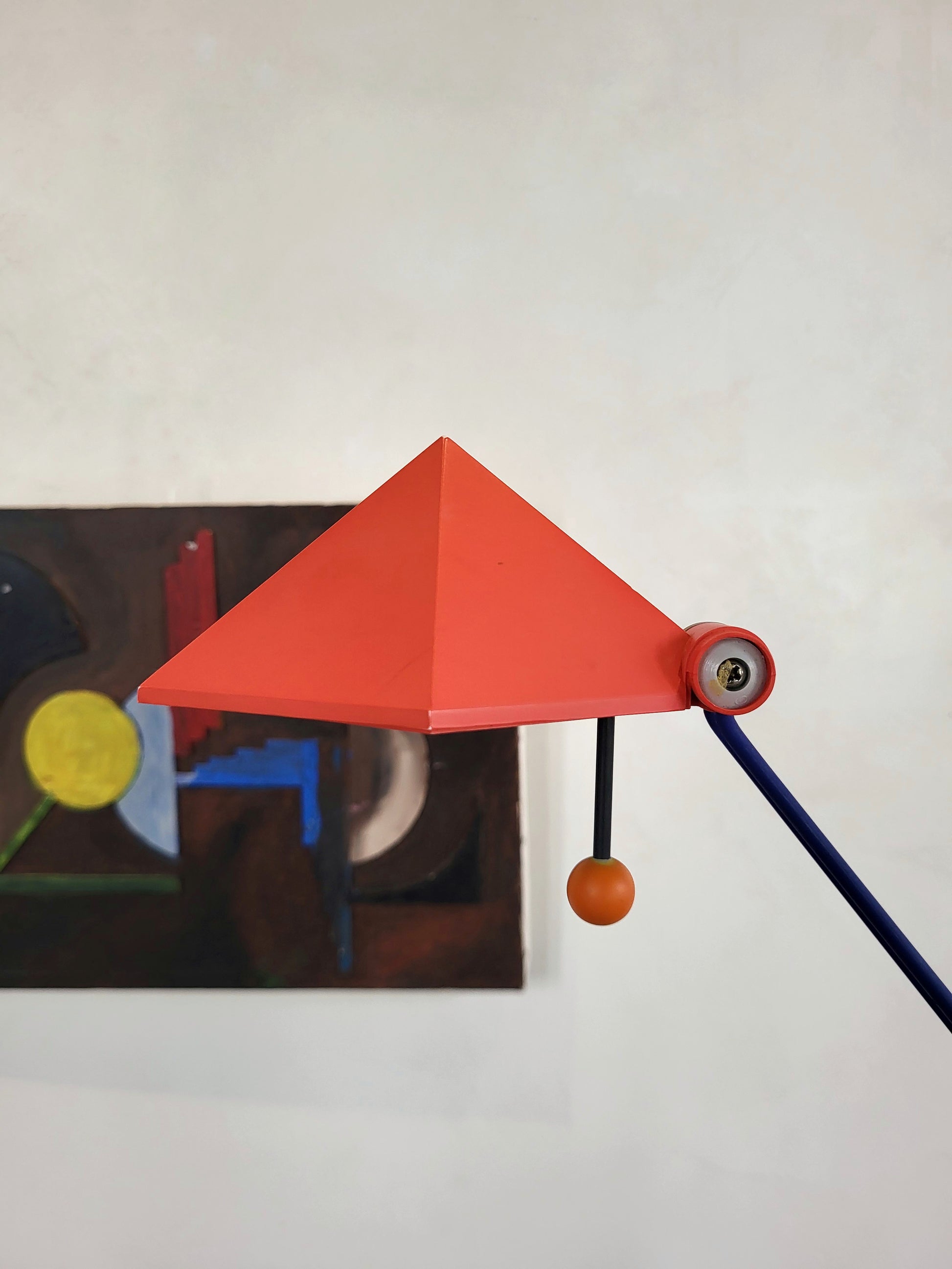 Lampe de sol dessinée par Lungean & Pullman dans les années 80 dans le style Memphis d'Ettore Sottsass, pour l'éditeur Allemand Brilliant Leuchten.