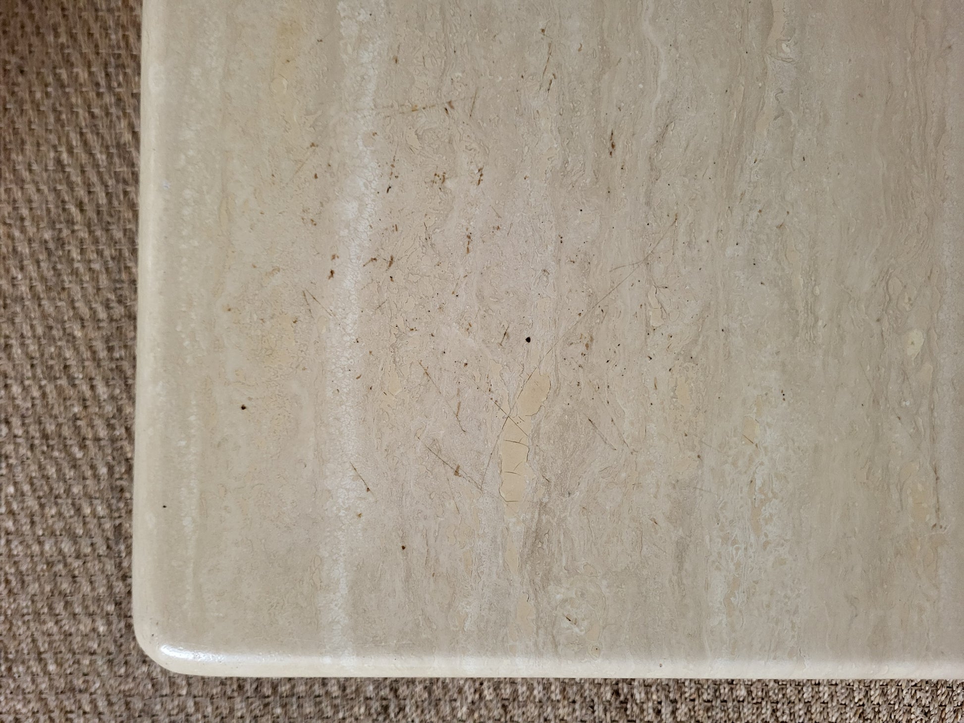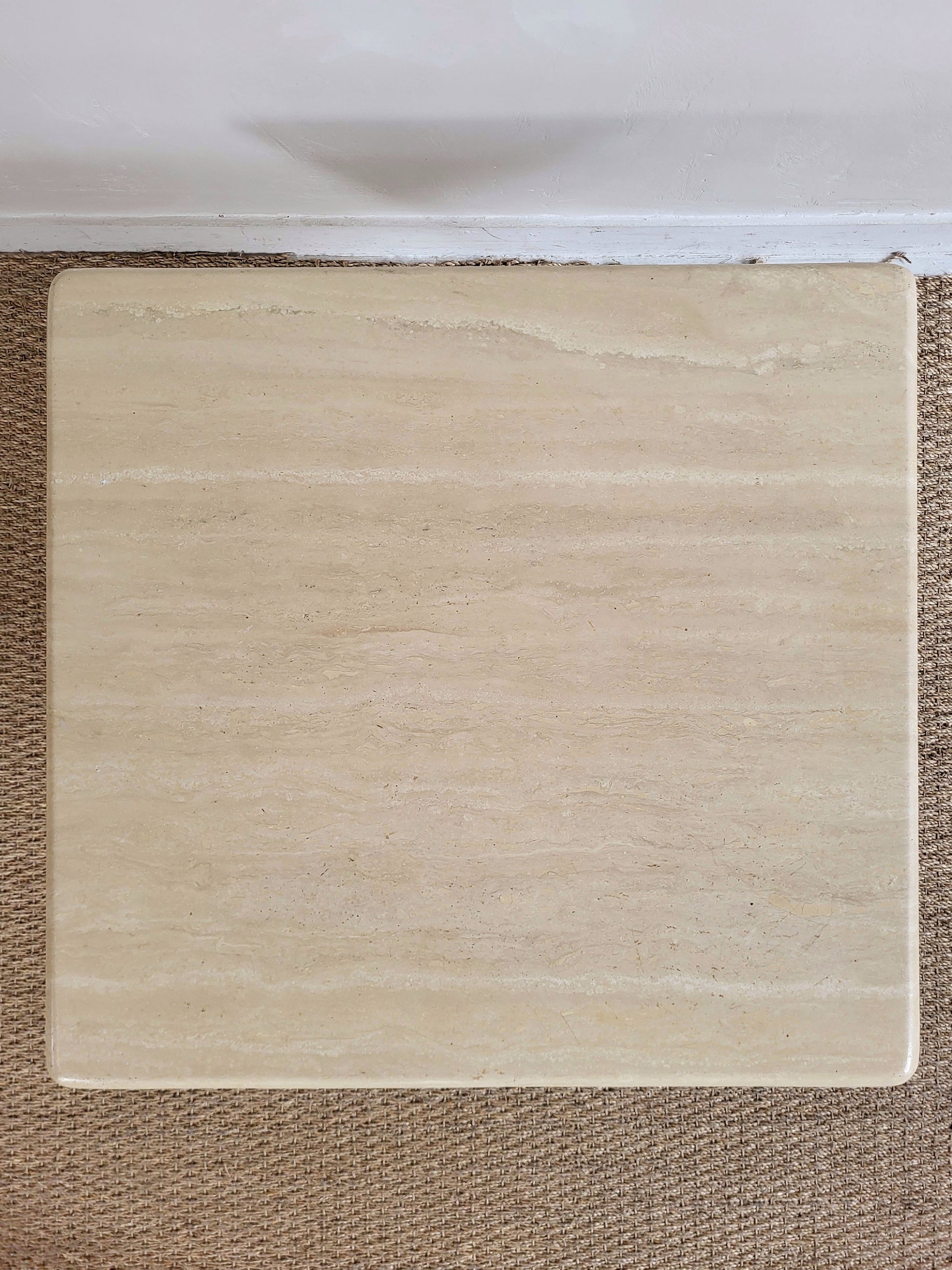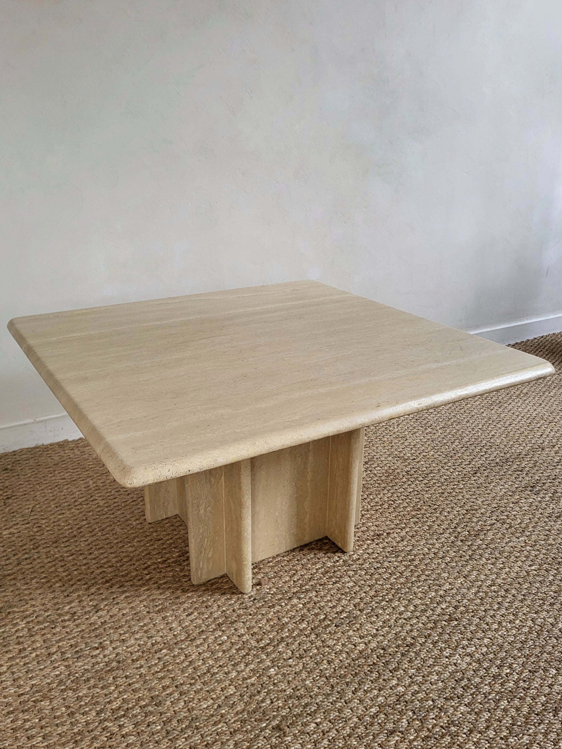 Table basse carrée en travertin, des années 70.